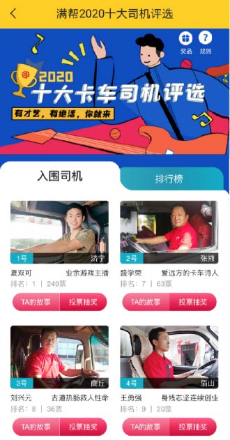 2020满帮司机节三十强出炉,十大司机票选开始