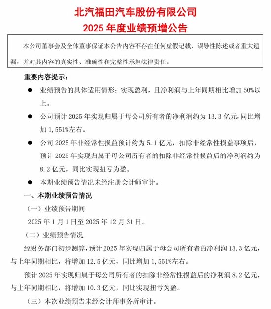 归母净利润激增1551%,北汽福田战略转型进入收获期